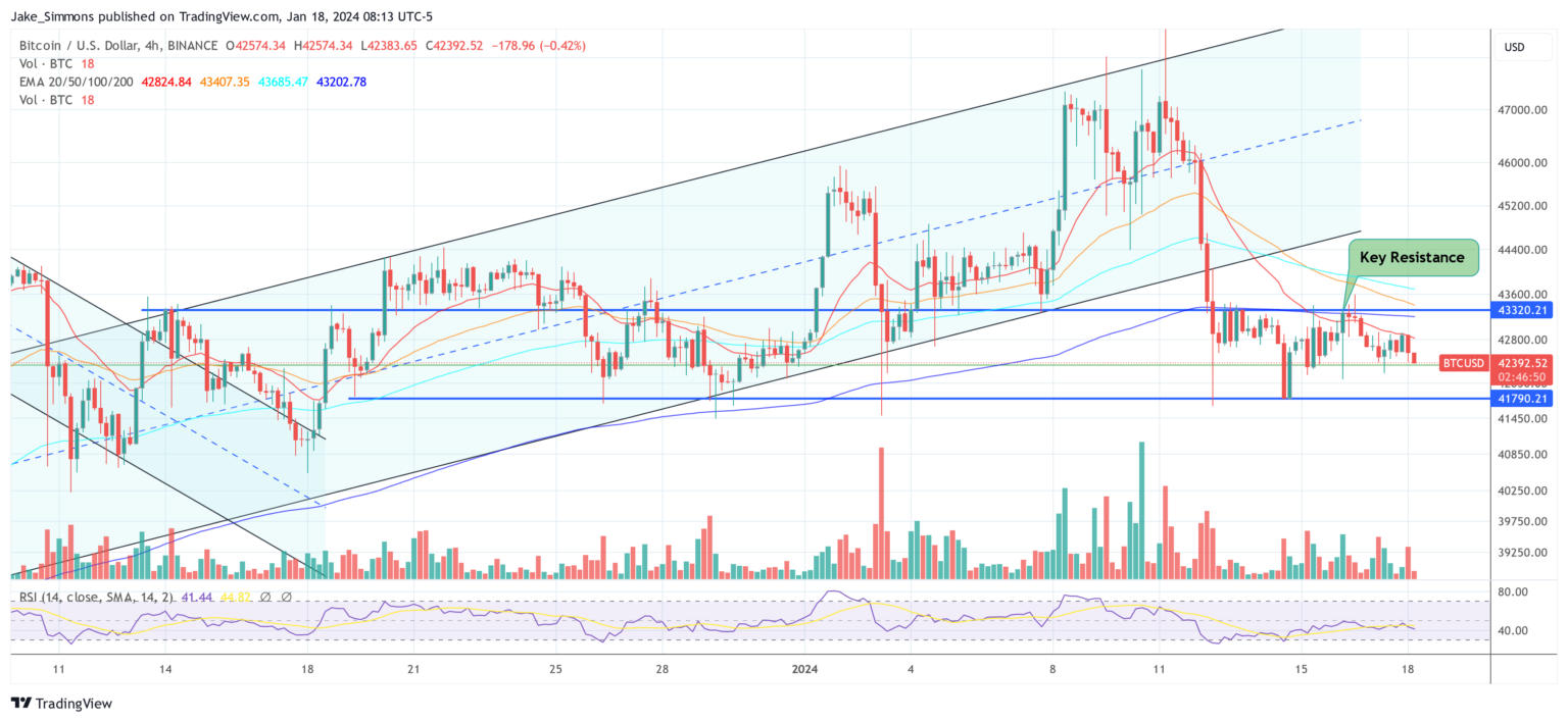 At press time, the Bitcoin value continued its sideways development, buying and selling at $42,392.