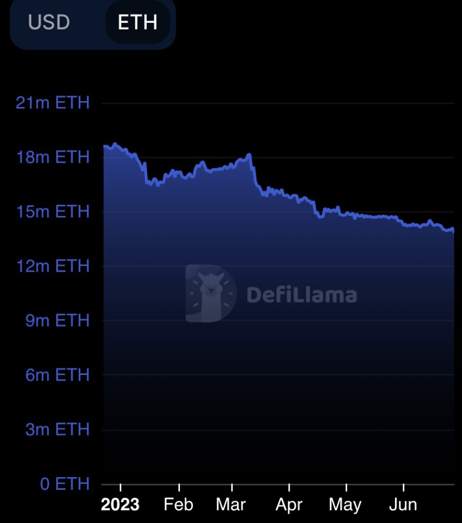 The Ethereum community has performed a dominant position within the good contract and DeFi market via its technological improvements. Nevertheless, market information from Defilama reveals a decline in Ethereum’s complete worth locked (TVL) all year long. Presently, Ethereum’s TVL stands at roughly $26.16 billion, with stablecoins accounting for about $69 billion in market capitalization.