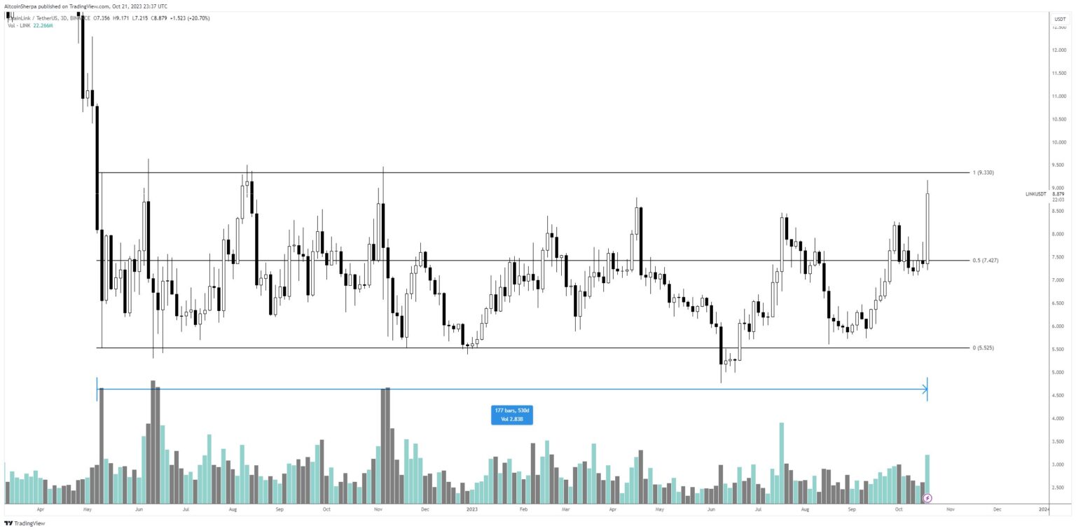 The pseudonymous dealer referred to as Altcoin Sherpa tells his 196,000 followers on social media platform X that the decentralized oracle service Chainlink (LINK) is without doubt one of the strongest initiatives within the business with the altcoin breaking out from its multi-month accumulation section.