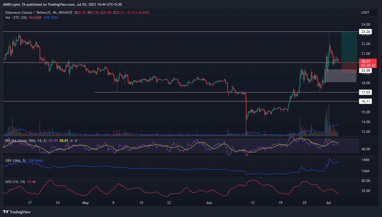- Ethereum Basic [ETC] hit a key worth ceiling zone in 2023