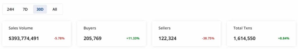 The identical development was additionally seen by way of the blockchain’s complete variety of NFT sellers final month.
