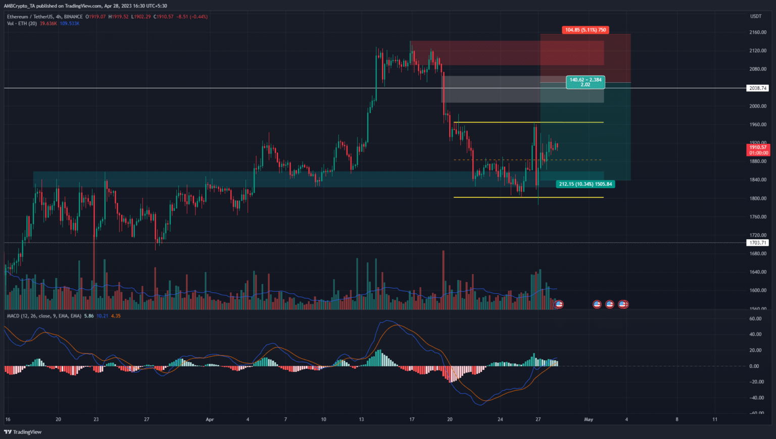 Ethereum [ETH] bulls had been capable of defend the $1840 help in current days and managed to push costs previous $1900. Whereas this was encouraging for decrease timeframe bulls, there was the chance {that a} foray to $2000 would see ETH rejected.