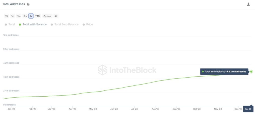 The agency notes that Optimism’s (OP) community at the moment clocks greater than 5.9 million addresses with a steadiness, an enormous 391% enhance from the 1.2 million addresses the venture had in January.