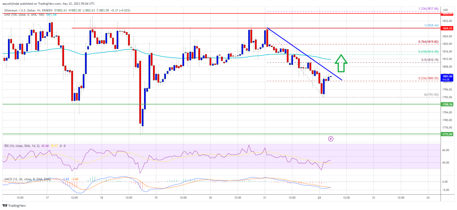 Ethereum’s worth failed one other time to clear the $1,840 and $1,850 resistance ranges. ETH declined under the $1,800 degree to stay in a variety, just like Bitcoin.