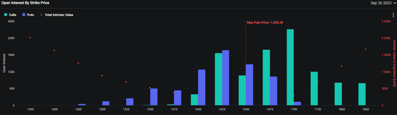 Deribit’s choices knowledge for 30 September presents a constructive outlook. The info reveals a major improve in name choices inside the $1,675-$1,700 bracket. Moreover, a put/name ratio of 0.69 means that bullish merchants are actively getting ready for a possible rise to $1,700.