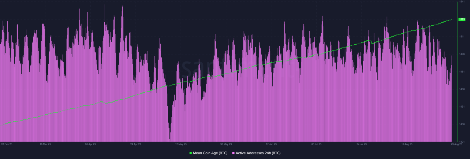 Talking of accumulation, Bitcoin’s imply coin age has been steadily rising and was at a 6-month excessive on the time of publication. This confirmed that long-term hodling was nonetheless going down.