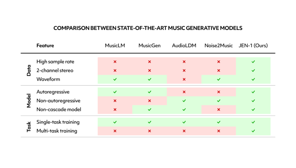 Throughout the preliminary testing phases, JEN 1, in response to the corporate, underwent rigorous analysis in opposition to state-of-the-art fashions, with each computational metrics and human assessments performed by an esteemed advisory board comprising music {industry} specialists.