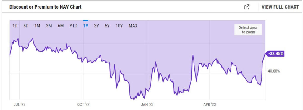 Grayscale’s Bitcoin Belief (GBTC) shares rose 11% on June 20 to $16.85 and narrowed the low cost to its web asset worth (NAV) to 33.45%—its highest level for the reason that starting of the 12 months, in response to YCharts knowledge.