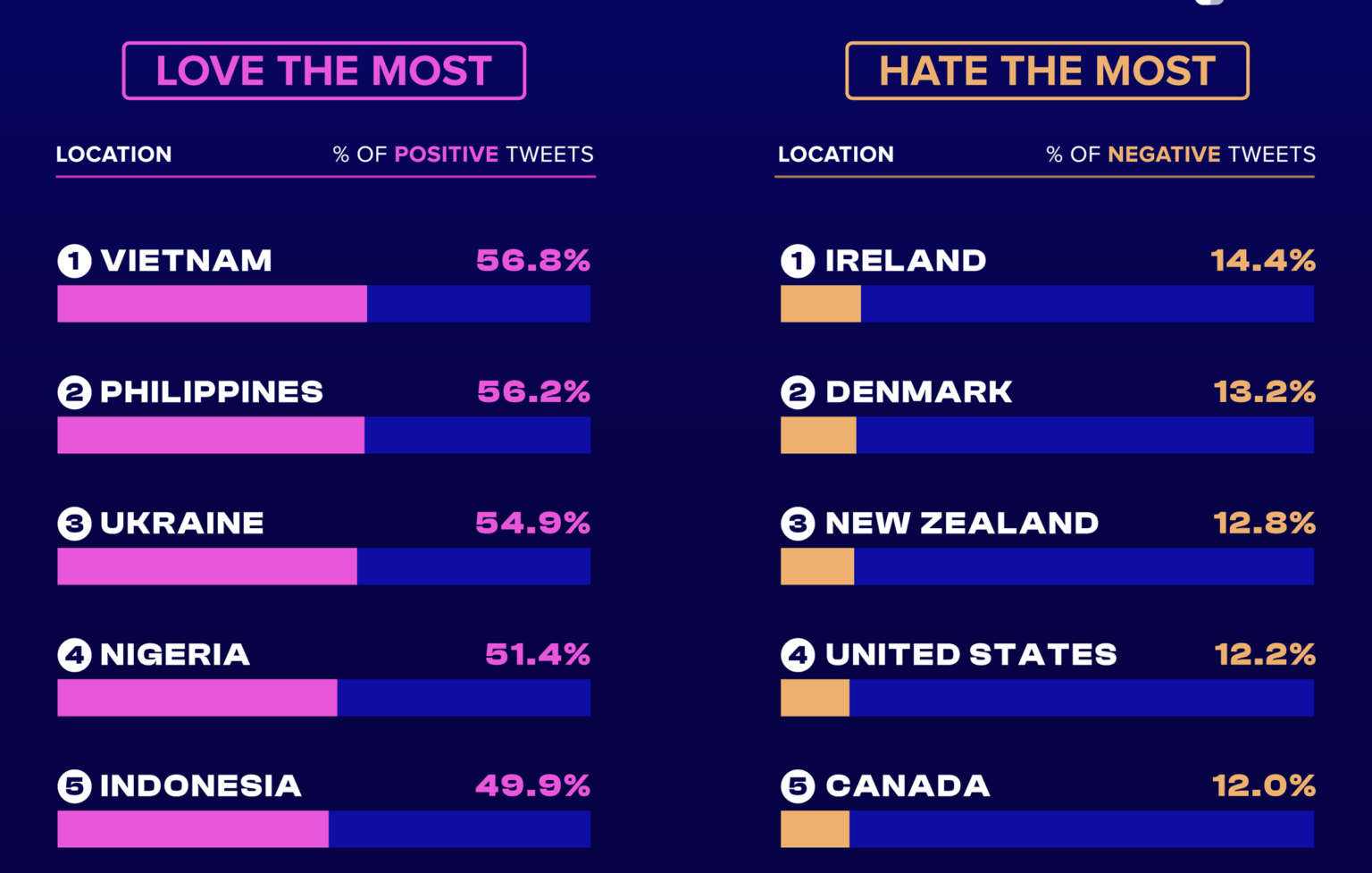 Western international locations have been those with probably the most opposition to the metaverse. Other than Eire, Denmark, New Zealand, america and Canada had probably the most tweets voicing adverse sentiments towards the metaverse.