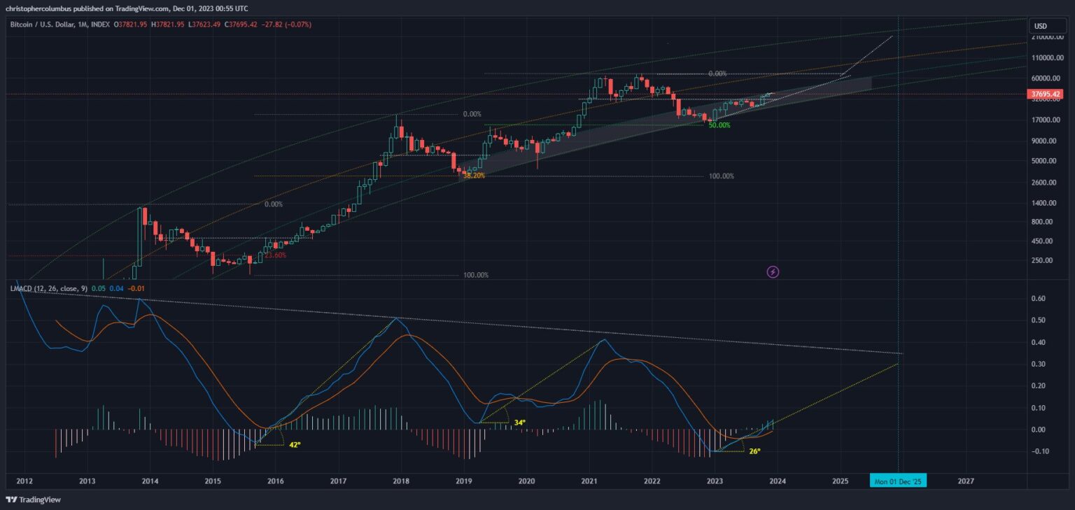 Pseudonymous dealer and analyst Dave the Wave tells his 143,000 followers on the social media platform X that Bitcoin’s shifting common convergence divergence (MACD) indicator on the month-to-month chart is signaling robust bullish momentum for BTC.
