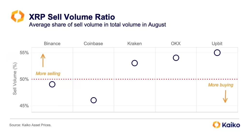 In a brand new evaluation, Kaiko notes that the Korean change Upbit and the Seychelles-based change OKX witnessed the strongest promoting stress for XRP in August.