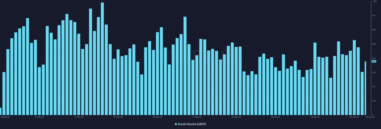 This surge in social quantity may assist USDT entice extra customers. At press time, the community progress of USDT surged materially, suggesting that there was an inflow of recent addresses holding on to USDT.