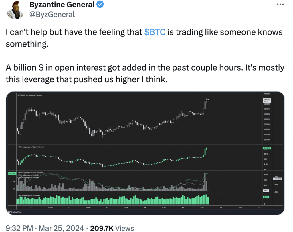 Bitcoin [BTC] has impressed huge optimism from merchants within the crypto area as the worth of BTC surged and reached the $70,000 stage.