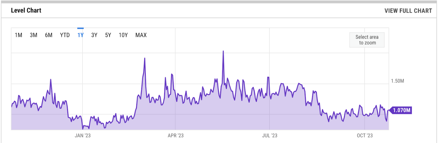 BNB chain day by day lively addresses. Supply: YCHARTS