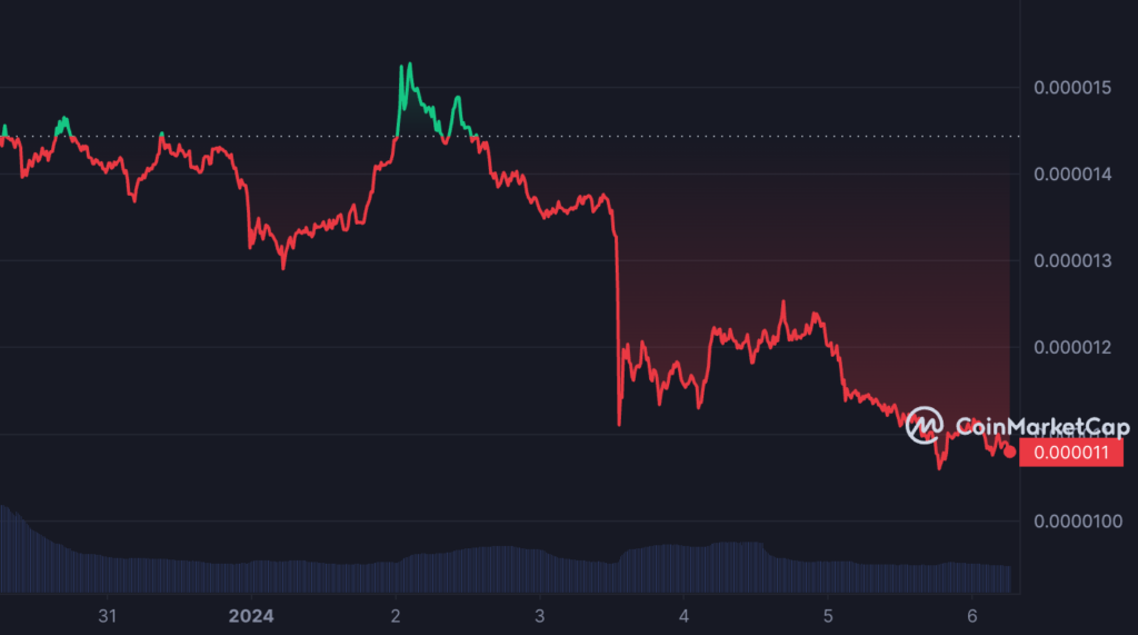 In response to knowledge from CoinMarketCap, the meme coin ranked because the crypto asset with essentially the most decline within the final week.