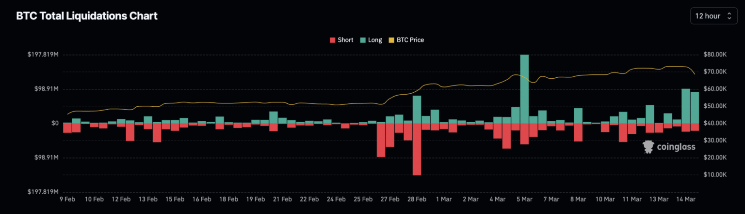 Main coin Bitcoin [BTC] has seen its value decline by nearly 10% up to now 24 hours. Throughout Asian buying and selling hours of fifteenth March, the worth of the coin dropped to a low of $67,000, marking a 7% decline, earlier than a quick rebound to $68,500.