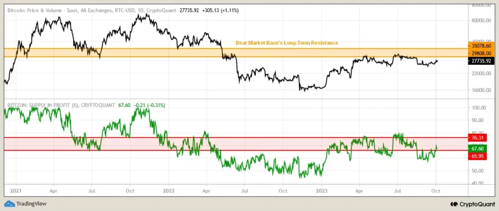 “On the identical time, the long-term resistance of Bitcoin’s provide in revenue (%) corresponds to the vary of 65.95-76.31…”