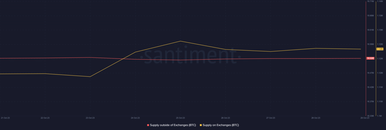 Whereas the whales’ confidence in BTC was excessive, the border market appeared to have a distinct opinion. This was evident from the truth that BTC’s Provide on Exchanges went above its provide exterior of exchanges.