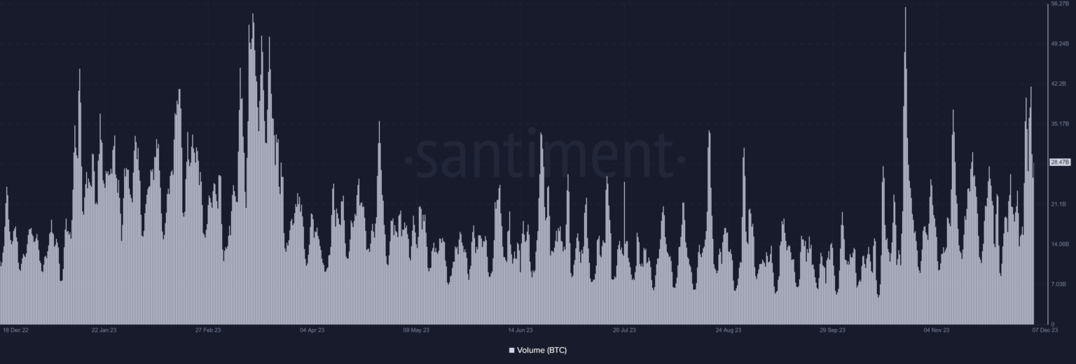 In line with Santiment’s information on the time of writing, the BTC quantity was over $28 billion at press time. Evaluation of the chart additionally confirmed that its quantity was over $38 billion within the earlier buying and selling session.
