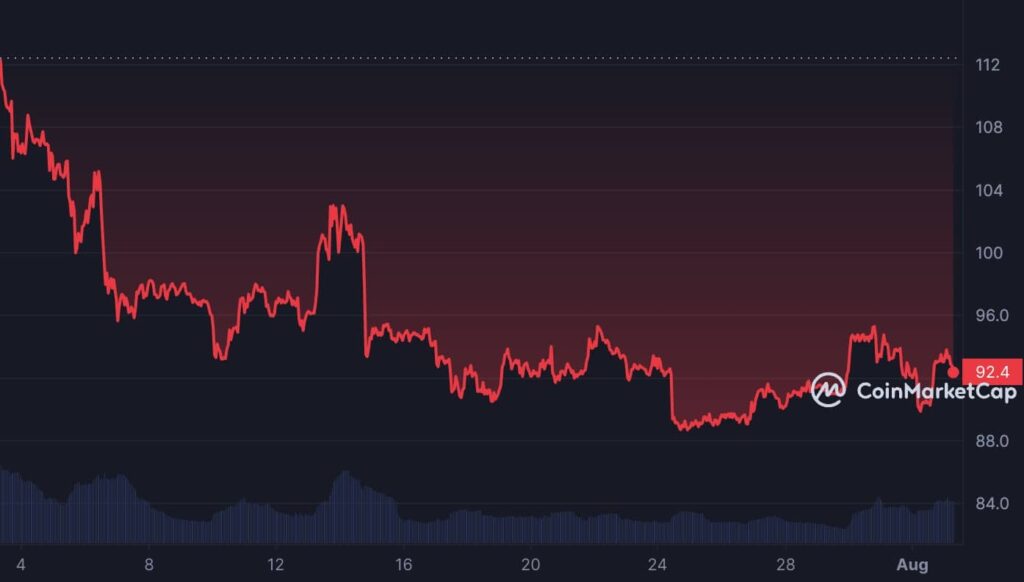At press time, the coin traded at $92.37. Regardless of the extensively recognized anticipation of the upcoming halving occasion over the previous month, the coin’s worth has did not see any optimistic response. Per knowledge from CoinMarketCap, the coin’s worth has declined by 16% prior to now 30 days.