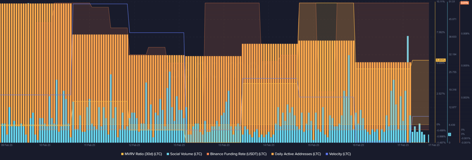 The identical remained true for LTC’s social quantity, which mirrored its recognition within the crypto market. Apparently, one more achievement for LTC was revealed by the Litecoin Basis- the community processed its 144 millionth transaction. Nevertheless, LTC’s velocity seemed regarding because it went down over the past week.