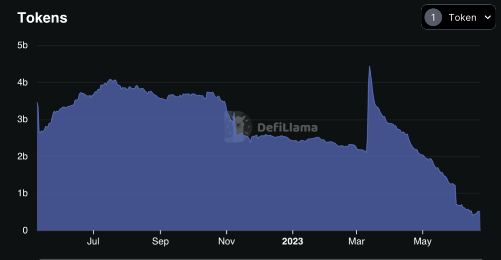 In January 2023, about $2.4 billion of USDC was locked within the PSM, per DeFiLlama knowledge. Now, this quantity has shrunk to round $520 million — indicating a 78% decline within the quantity of USDC immediately used to again DAI in its personal contracts. That stated, the challenge nonetheless has some further publicity to USDC by its settlement with Coinbase.
