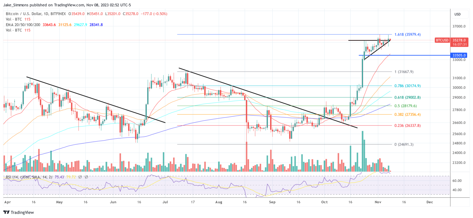 At press time, Bitcoin traded at $35,278.