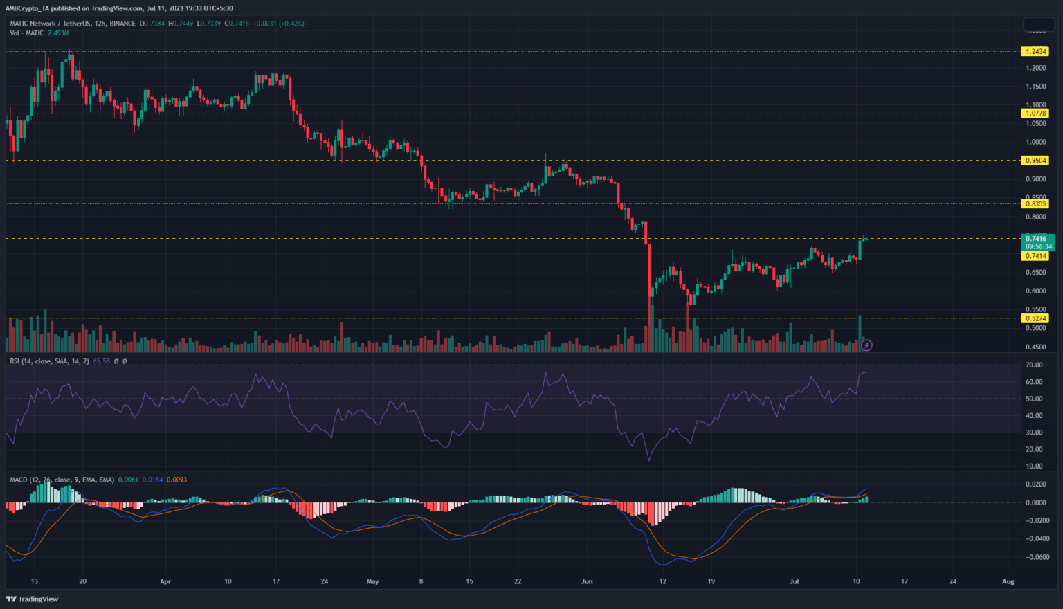 Positive aspects of 9.7% over the previous 24 hours took Polygon [MATIC] to inside touching distance of the $0.7414 resistance degree. MATIC’s sluggish reversal from the July 2022 low of $0.5274 confined the altcoin to a variety with neither bulls nor bears gaining the higher hand.