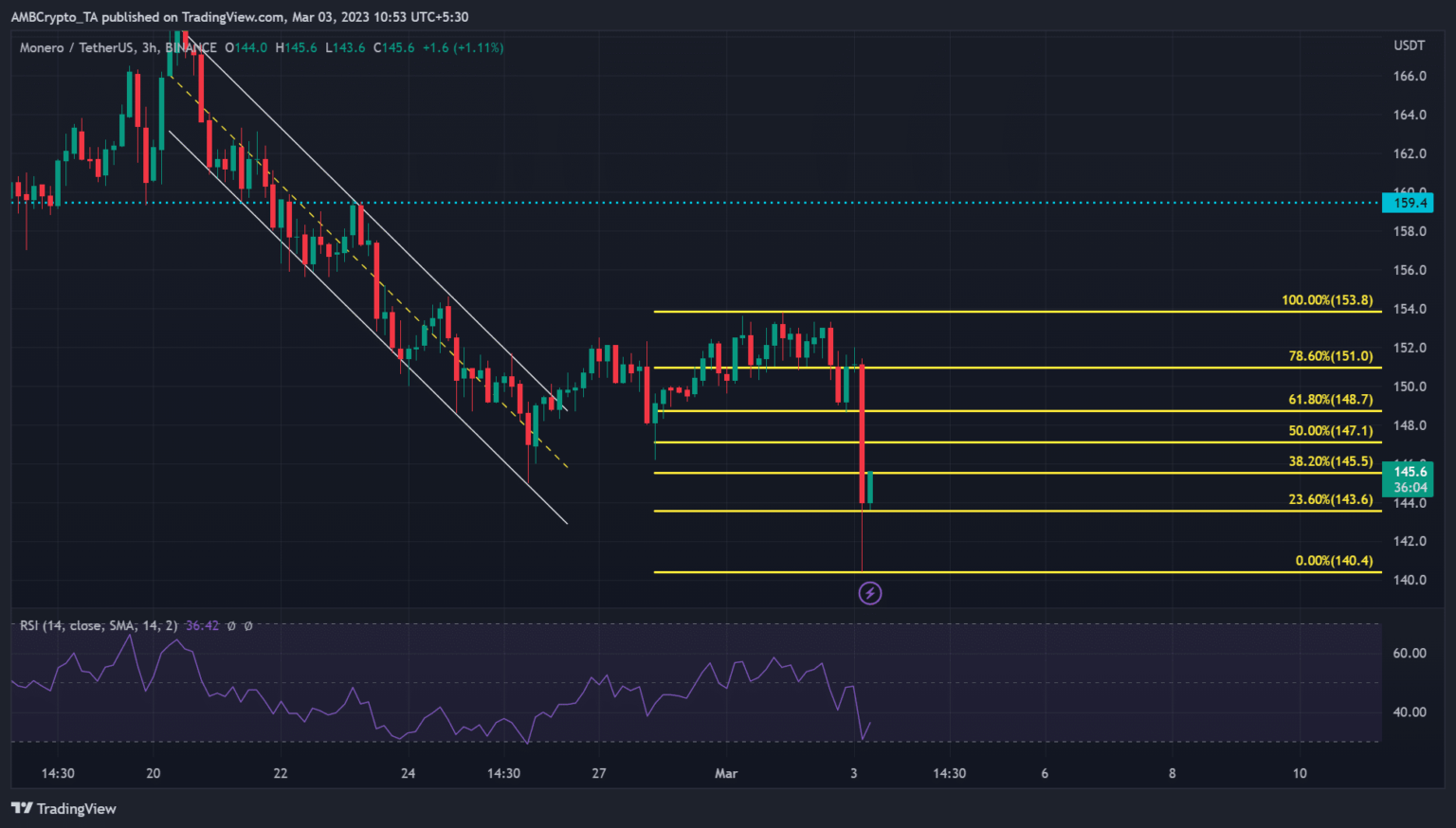 Monero [XMR] dropped to its December 2022 lows of $140, clearing all of the positive aspects prior to now two months. The retracement adopted a pointy plunge of Bitcoin [BTC] to $22,000 amidst the Silvergate financial institution fallout as its crypto shoppers like Coinbase suspended enterprise with it.
