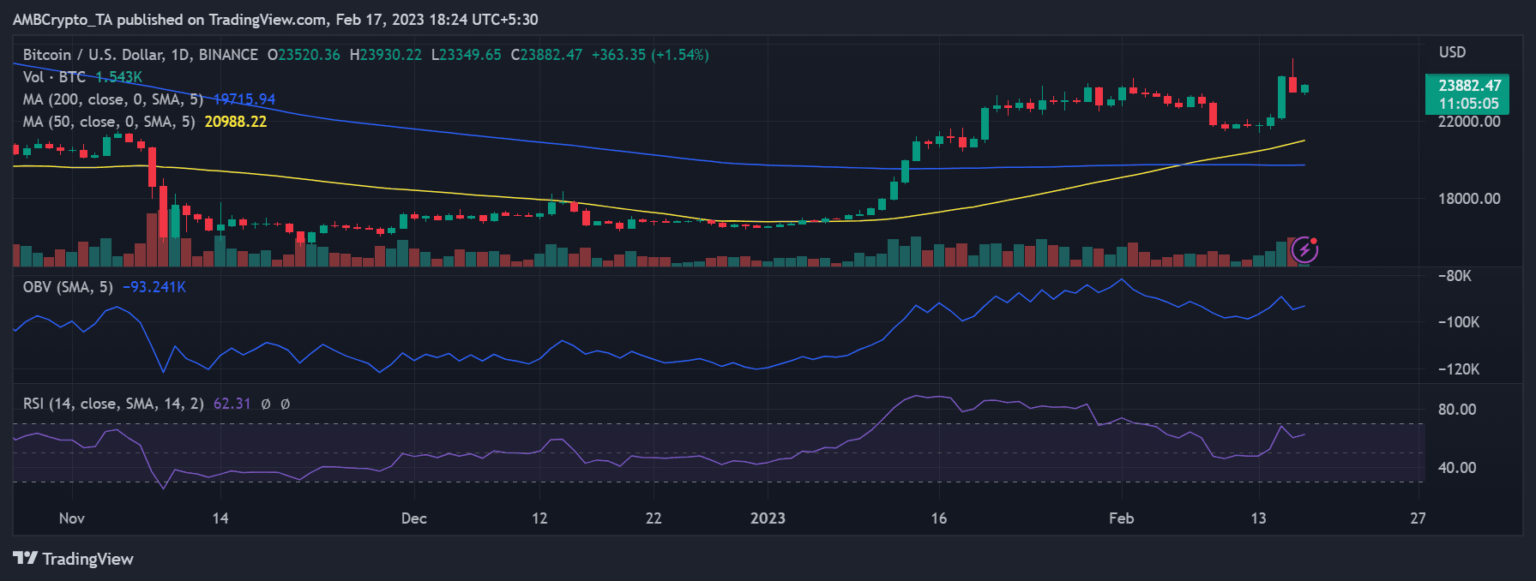 On the time of writing, the worth of Bitcoin was near $23,800.
