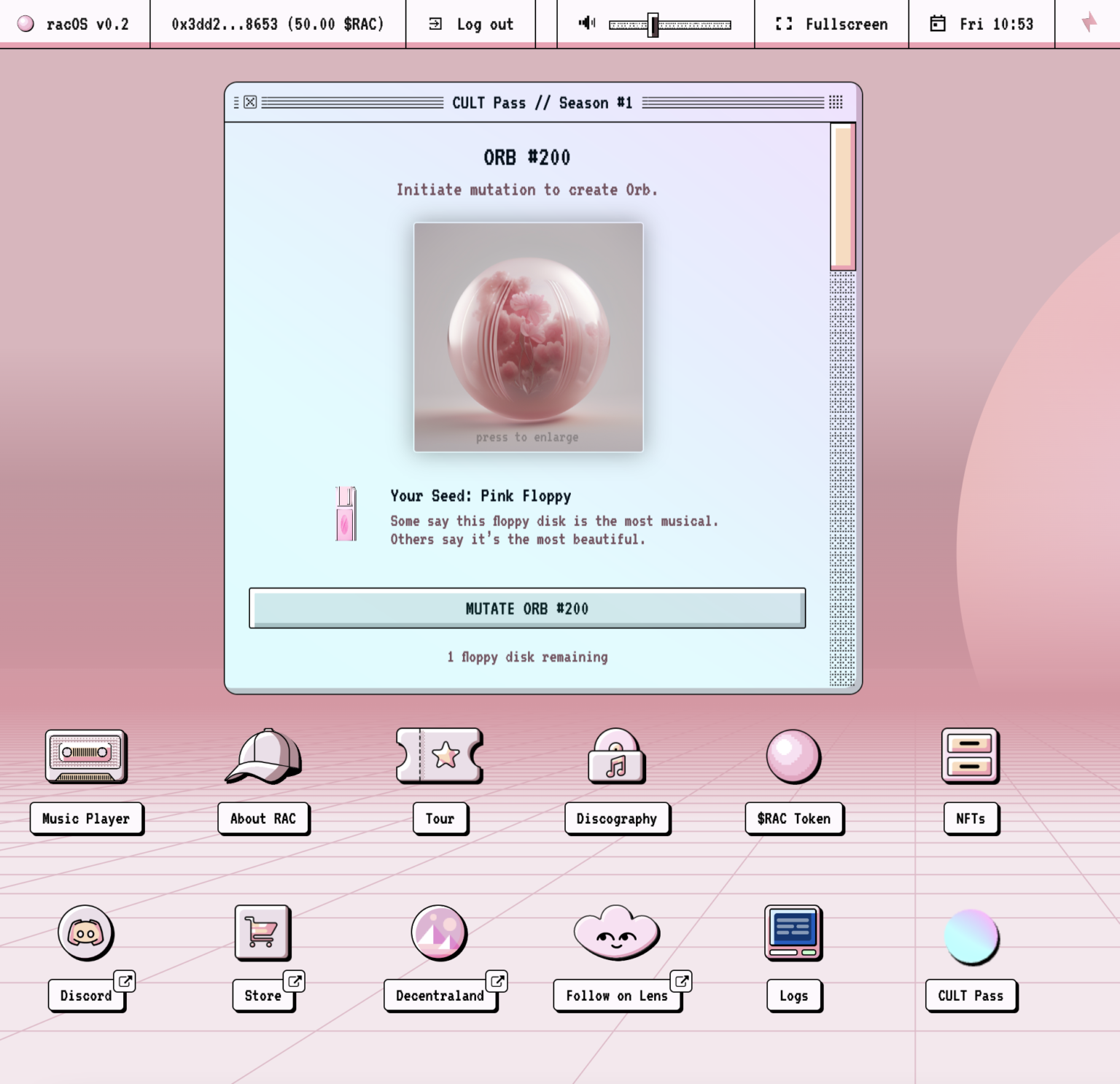 In addition to imagery, RAC needs to include generative music and video in future variations of the orb, whereas off-chain actions equivalent to streaming music on Spotify, shopping for gig tickets, and watching livestreams can even impression how the orb evolves.