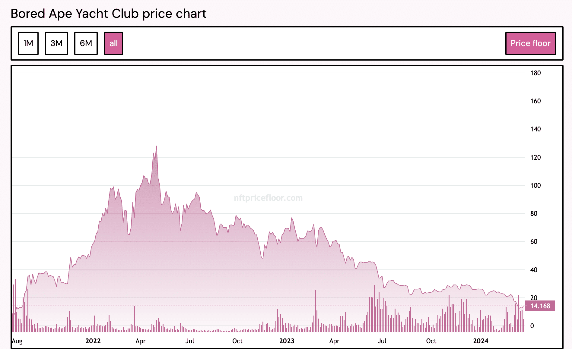 This marked a 46% decline from the gathering’s ground value of 26 ETH, which it recorded on 1st January. At its present ground value, the NFTs that make up the BAYC assortment at present promote at their lowest values since August 2021.
