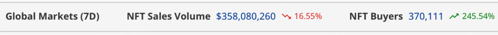 Seven-day gross sales in line with cryptoslam.io metrics.