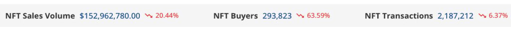After a number of weeks of consecutive positive aspects, gross sales of non-fungible tokens (NFTs) have slumped 20.44% this week in comparison with the earlier week. Based on seven-day statistics, NFT gross sales totaled $152.96 million final week, with $84 million in gross sales originating from the Ethereum blockchain.