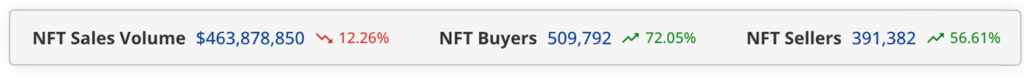 Within the final week, gross sales of non-fungible tokens (NFTs) have fallen by 12.26%, totaling $463.87 million, marking a lower from the earlier week. NFTs centered round Bitcoin topped the chart, amassing $265.61 million in gross sales, regardless of a 13.71% decline from the previous week. In the meantime, Solana NFTs climbed to the second rank, relegating Ethereum to 3rd place on this week’s gross sales.