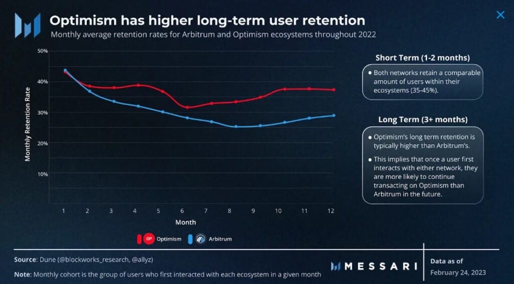 - Optimism outperformed Arbitrum when it comes to consumer retention.