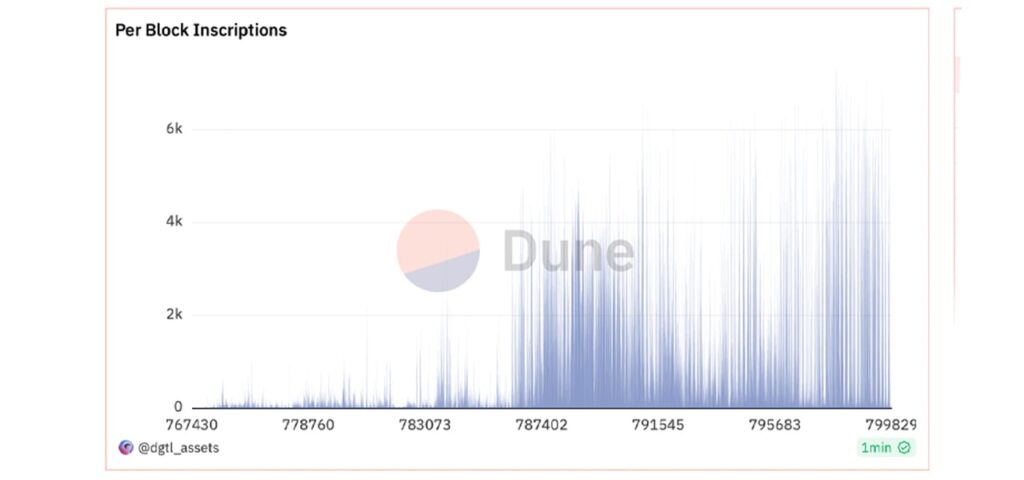 As of July 22, 2023, at block peak 799,830, roughly 18,599,837 Ordinal inscriptions have been issued on the bitcoin blockchain. The pattern has continued to rise for the reason that first inscription 218 days in the past. Archived statistics from Dune Analytics point out that 78.5% of all of the inscriptions minted on Bitcoin are in plain textual content type or character units, whereas one other 13.5% is obvious textual content, bringing the entire of plain textual content and character set inscriptions to 92%. The rest of the inscriptions include photographs, GIF recordsdata, animations, purposes, and extra.