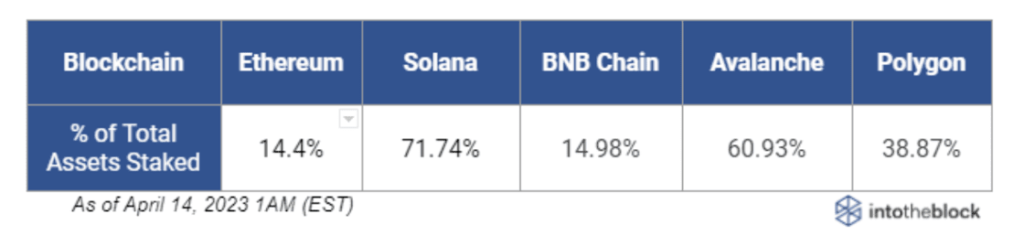 IntoTheBlock compares the quantity of ETH staked to that of rival good contract platforms, similar to Solana (SOL), BNB Chain (BNB), Avalanche (AVAX), and Polygon (MATIC). In keeping with the analytics agency, Solana is method forward of the pack with Ethereum in final place.