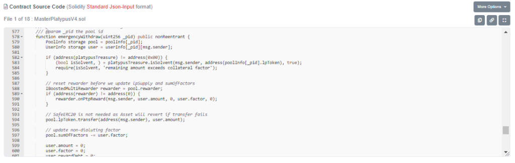 “The difficulty might have been prevented by re-ordering the MasterPlatypusV4::emergencyWithdraw statements and performing the solvency test after the person’s quantity entry has been set to 0 which might have prohibited the assault from going down.”