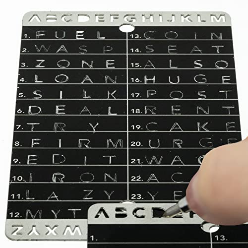 ❰AN ALL-IN-ONE KIT❱ We’ve made it easier for all Crypto Hodlers to write their seed phrases in an organized fashion by introducing a unique design, which features integrated letter stencils on both CSB cards. You can now seamlessly engrave up to 48 seed words by using the provided tungsten-tipped pen, all while keeping a neat and clean look.