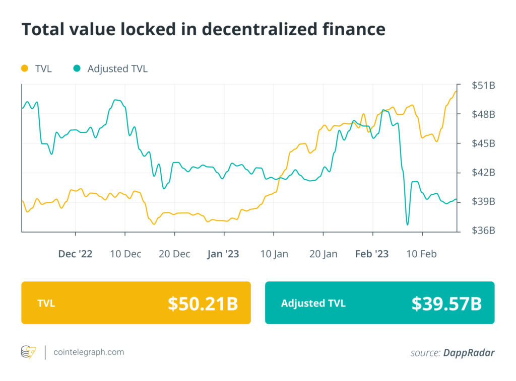 Analytical information reveals that DeFi’s complete market worth hit $50 billion this previous week. Information from Cointelegraph Markets Professional and TradingView reveals that DeFi’s prime 100 tokens by market capitalization had a bullish week, with many of the tokens buying and selling in inexperienced with double-digit positive aspects.