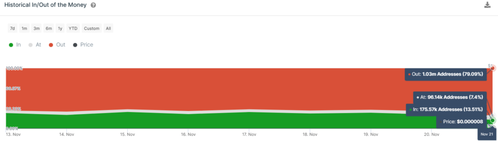 Regardless of a bullish begin within the first week of November, the SHIB worth has since witnessed bearish stress, dealing with sell-offs at key resistance ranges. Though the Shibarium blockchain continues to carry out and obtain transaction milestones, its success has not been mirrored in SHIB’s worth. Moreover, declining on-chain metrics level in the direction of a downward sentiment for the main memecoin within the coming hours.