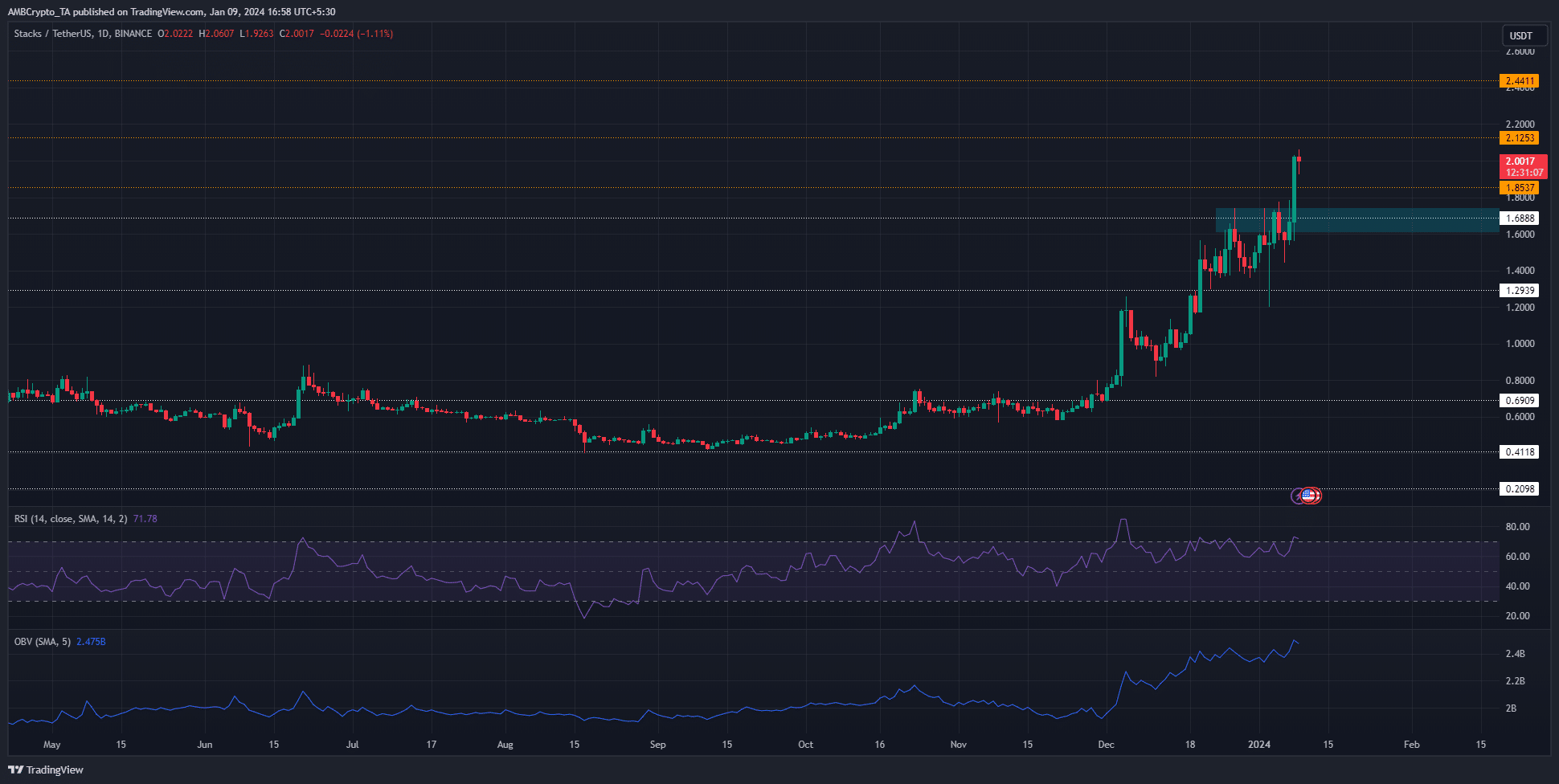 Over the previous 24 hours, a brand new inflow of demand noticed costs climb larger. Sentiment was additionally in favor of the consumers as Stacks targets the $2.45 stage subsequent.