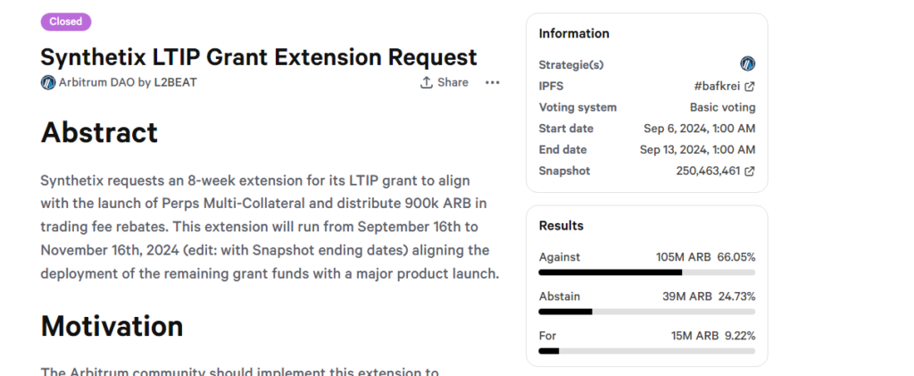 Arbitrum Holders Vote Towards Synthetix Proposal
