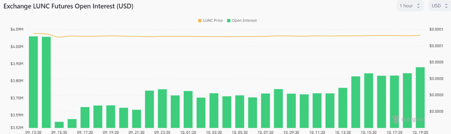 Inspecting from an on-chain viewpoint, LUNC’s open curiosity skilled a $50K discount on October 9, because of its 2-month worth low. However, the OI metric has since rebounded, recording an uplift of over $30K from yesterday’s standing, indicating an increase in futures positions because of a spike in worth volatility.