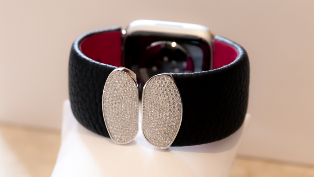 That rendition options over 400 VVS diamonds totaling 2.5 carats, set in white gold palladium and requiring some 136 hours of hand workmanship. The cuffs are designed in order that Apple’s smartwatch may be worn below the wrist, so your messages don’t flash up for all to see.