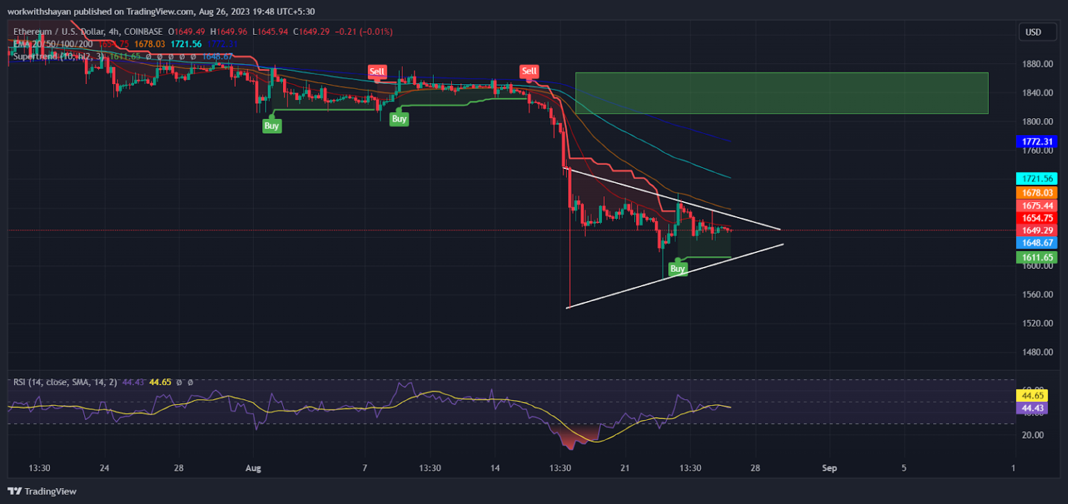 Ether’s value lately tried to interrupt above $1,700 however couldn’t keep its place, indicating robust protection from the bears at this value level.