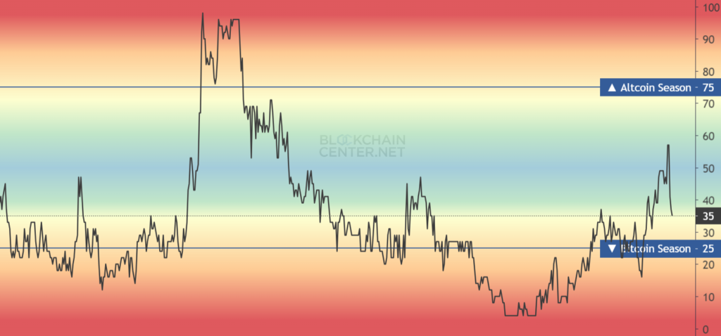 But, with Bitcoin’s value regaining momentum, the altcoin season index has declined from its peak of 56 to a present degree of 35. This shift has launched a blended sentiment and warning within the altcoin market.