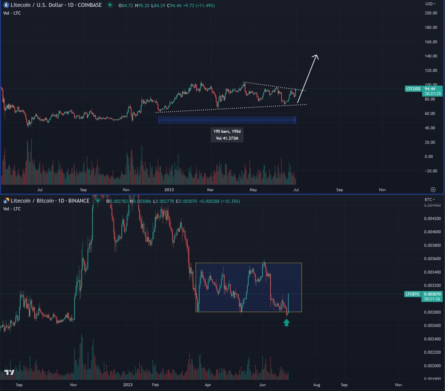 In accordance with the crypto strategist, LTC appears bullish on each its USD and BTC pairs.