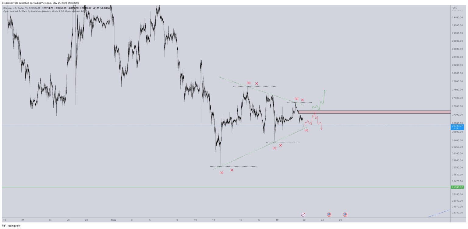 Pseudonymous analyst Credible Crypto tells his 340,700 Twitter followers that he thinks Bitcoin is able to see another leg down because it continues to commerce under resistance at $27,000.